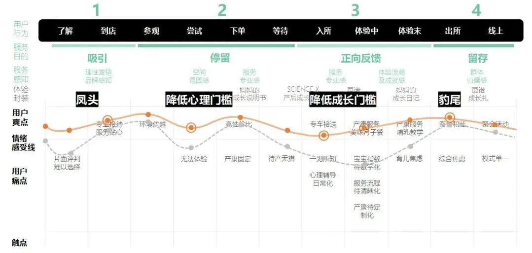 同时从服务及体验流程入手,深化服务设计,为茵诺月子中心设计一次亲切、温暖、无负担的体验旅程。从用户视角看到的全部服务体验,包含用户经历的每个阶段及他们与企业组织之间的接触。